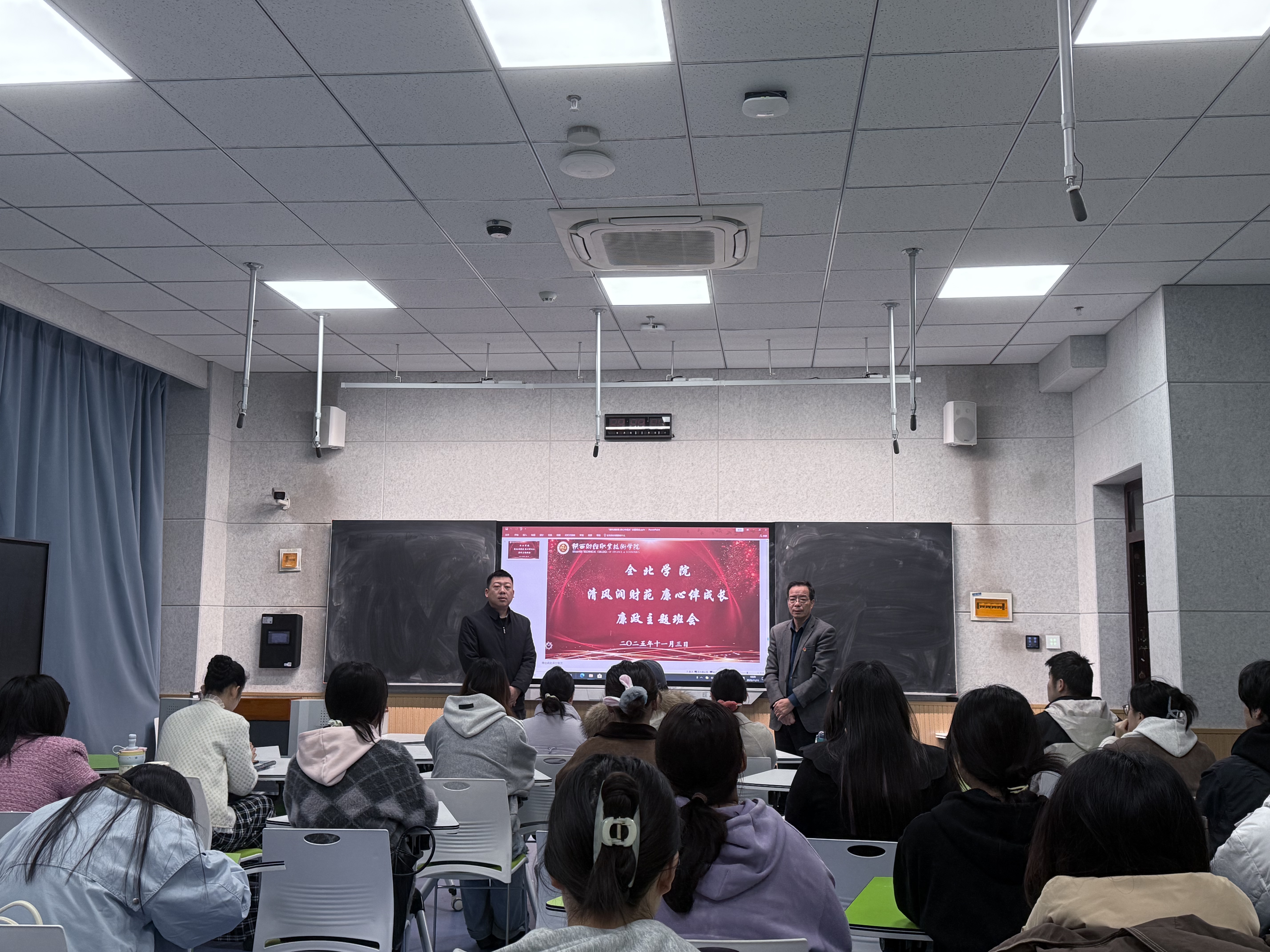 为筑牢新生思想道德防线,培育财经专业学子廉洁素养,2025年11月3日,全北学院组织2025级大数据与会计、金融服务与管理、电子商务三个专业新生开展“清风润财苑 廉心伴成长”主题班会活动,将廉洁教育与专业启蒙、校园生活深度融合,为中外合作办学注入清廉底色。