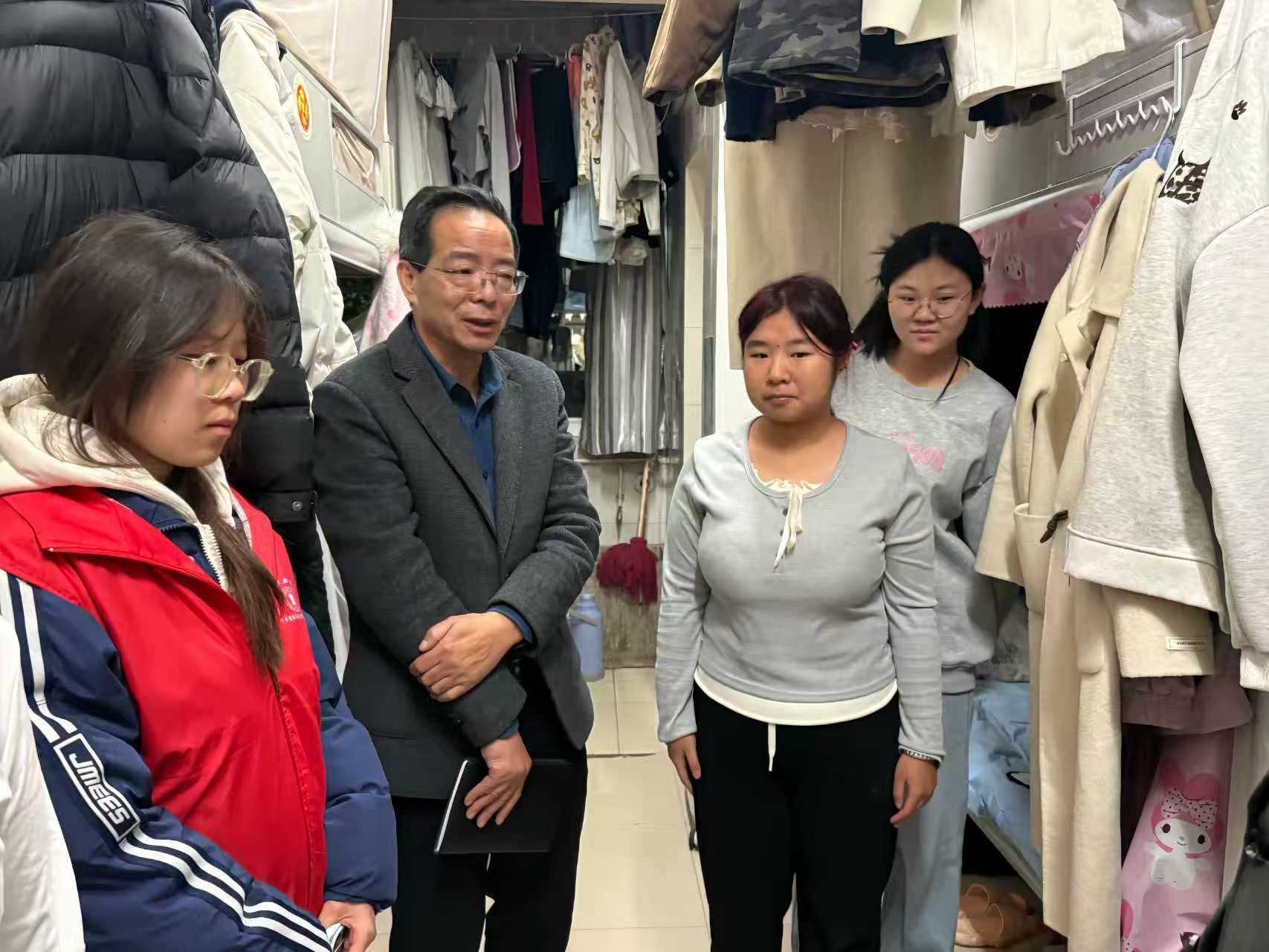 “宿舍安全没有‘旁观者’,每个人都是‘责任人’。”检查过程中,雷剑以“安全宣讲+温情交流”的方式与同学们深入沟通,在逐一查看宿舍电路布局、消防通道及物品存放情况的同时,重点询问宿舍供暖设施等生活配套是否完备,细致了解学生在住宿生活中遇到的实际困难。他强调“小隐患易酿大事故”,要求同学们从源头杜绝安全风险。