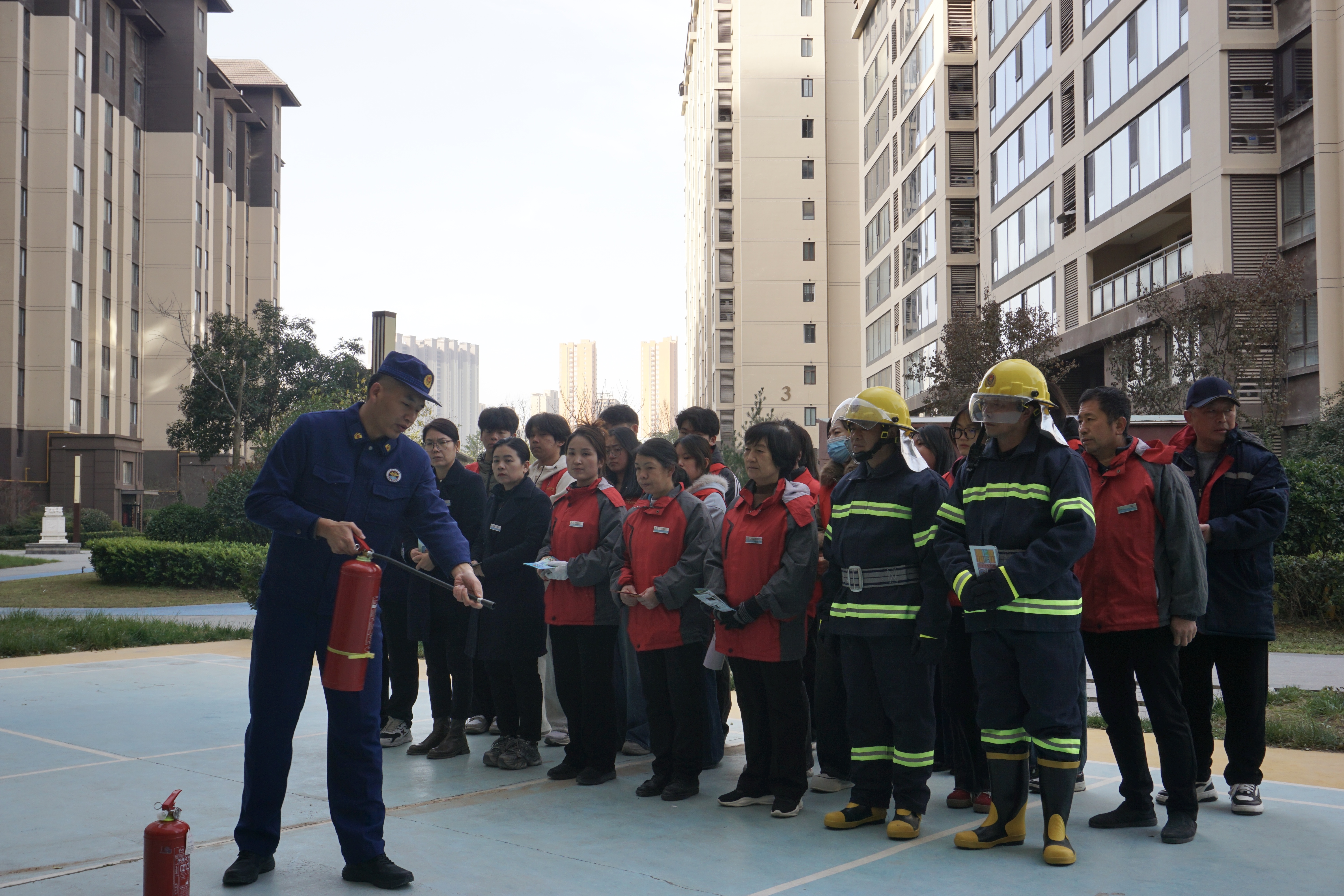 为提升社区居民与志愿者的消防安全意识和应急处置能力,筑牢社区消防安全“防火墙”,11月26日上午10点,全北学院15名志愿者与吴家堡社区工作人员携手咸阳市秦都区消防救援大队,在力高小区共同开展了一场内容丰富、实操性强的消防演练活动。